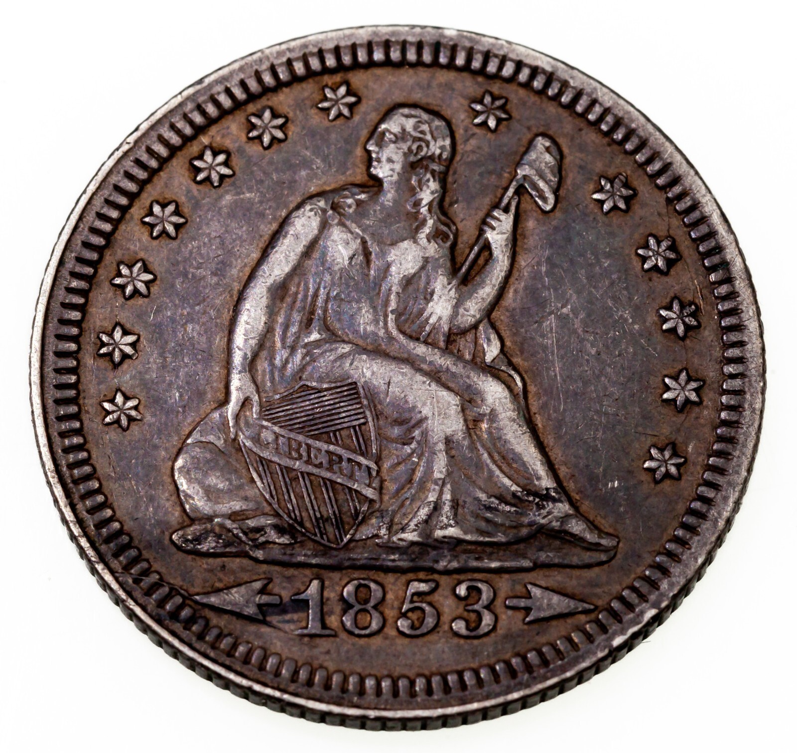 1853 Arrows and Rays 25C Seated Quarter in Extra Fine XF Condition Strong Detail