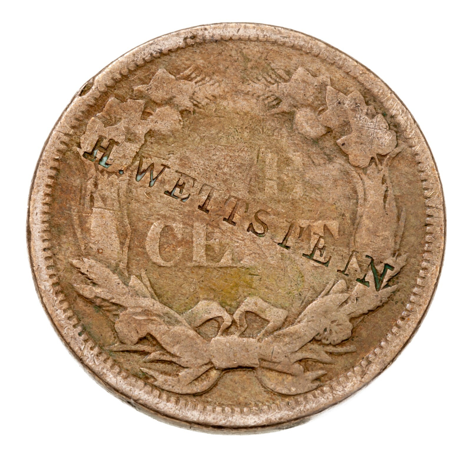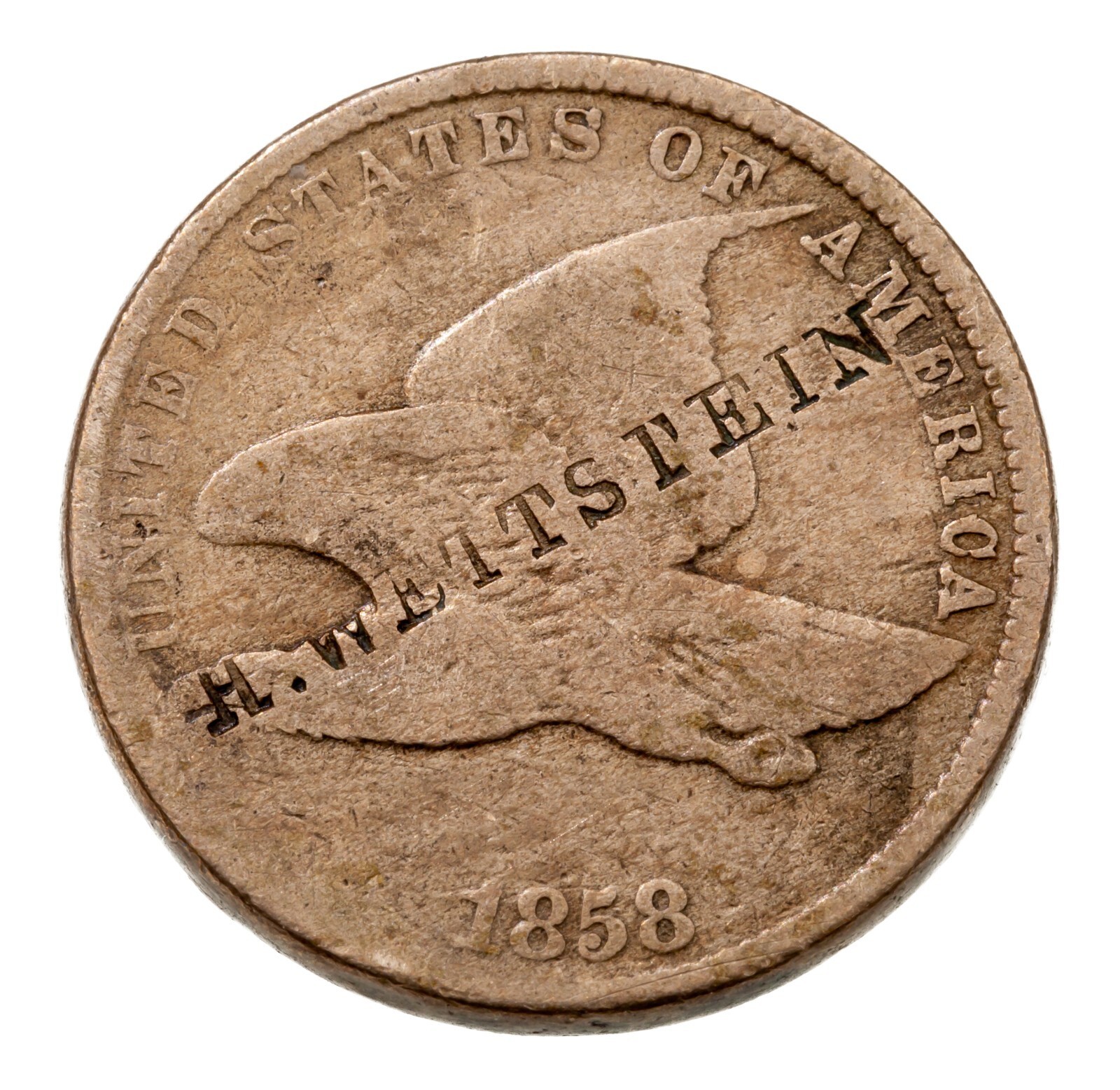 1858 1C Flying Eagle Cent in Good Condition, With "H. WETTSTEIN" Counterstamp