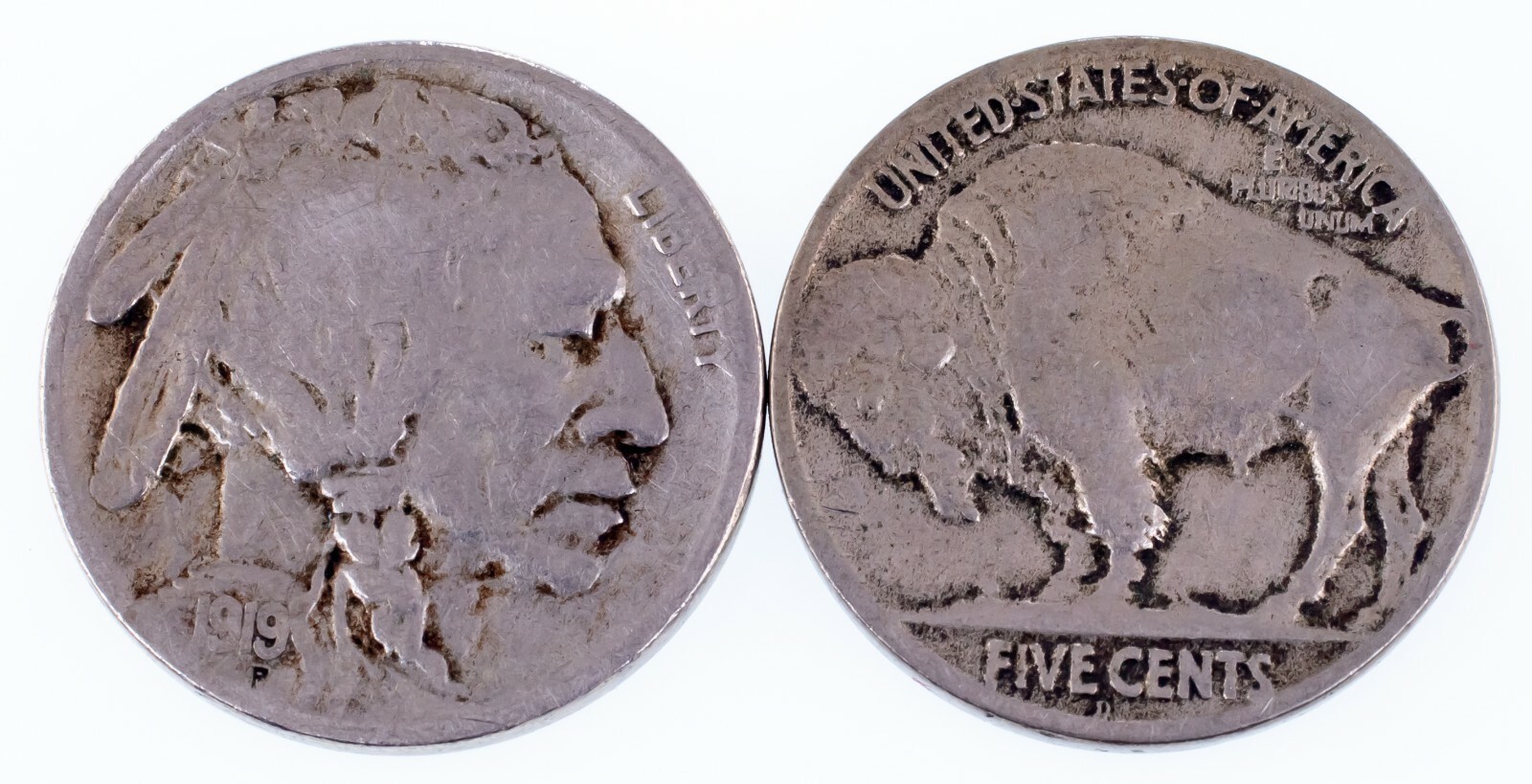 Lot of two 1919 Buffalo Nickels (D + S) in VG Condition, Natural Color