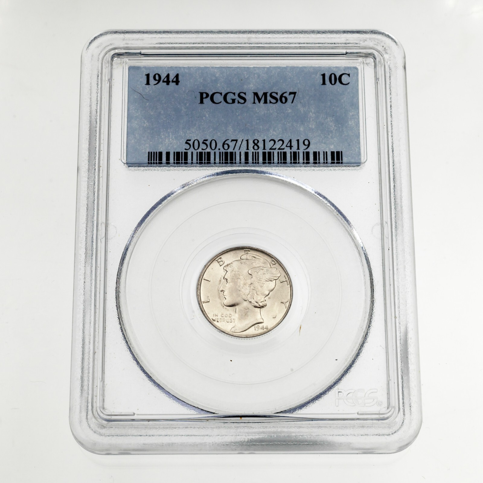 1944 10C Mercury Dime Graded by PCGS as MS-67 and 21 similar items