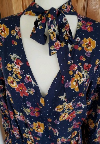 Xhilaration Brand ~ Women's Size XS ~ Blue Floral Dress ~ Peacoat ~ 100% Rayon