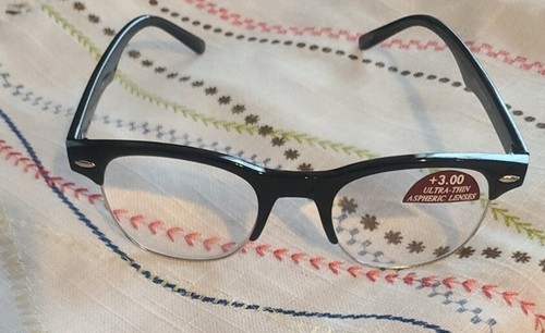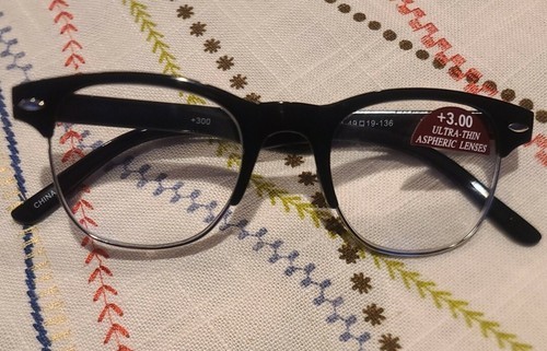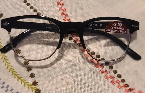 Ultra-Thin Aspheric Lenses ~ Black Silver ~ +3.00 Browline Reading Glasses (D4)