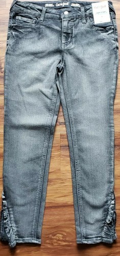 Cat & Jack ~ Girl's Size 12 ~ Charcoal Gray Jeans ~ Pleated Hem ~ Ruffle