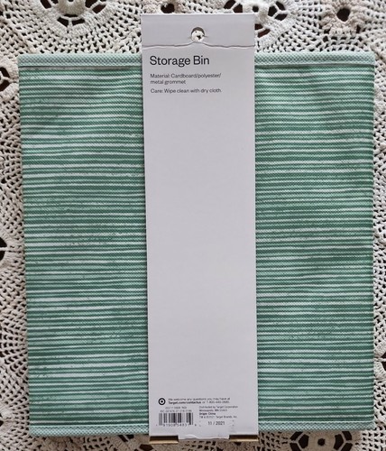 Room Essentials™ ~ 11" Storage Bin ~ Polyester Cube ~ Green Stripe Pattern