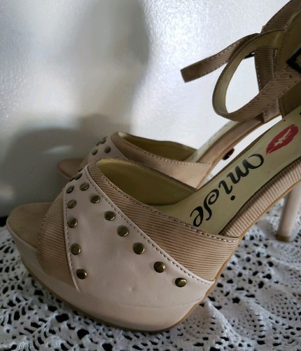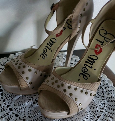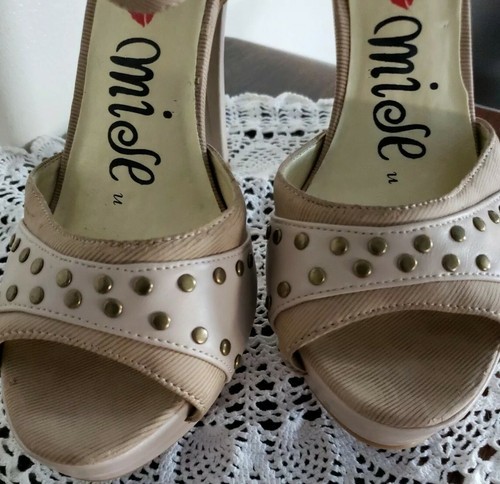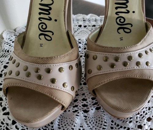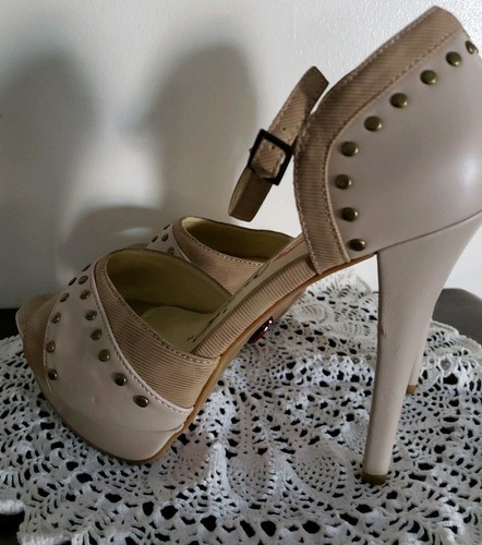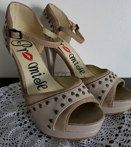 Promise Brand ~ Women's Size 8 ~ Beige ~ Faux Leather ~ 5" Heel Platform Shoes