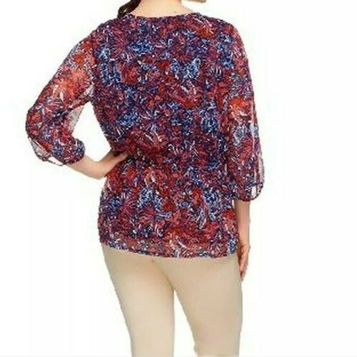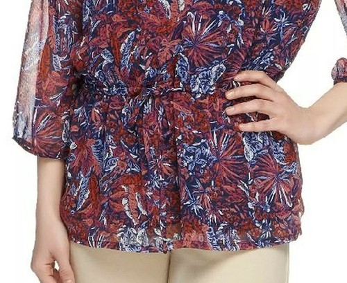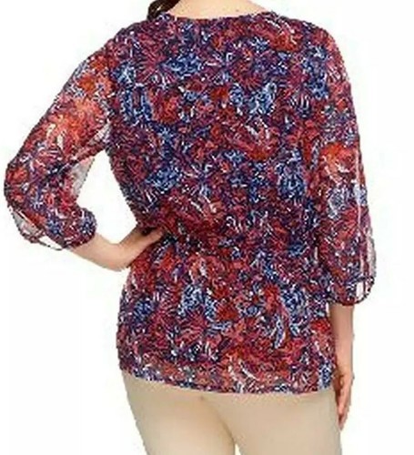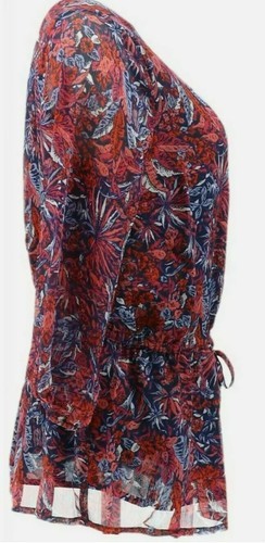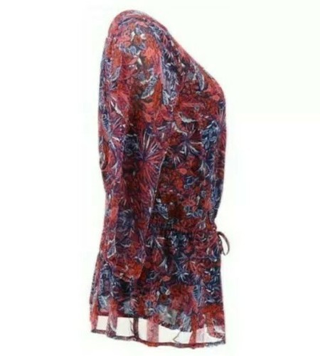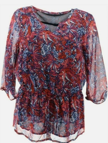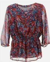 Liz Claiborne ~ 3/4 Sleeve ~ Elastic Waist ~ Red Printed Tunic ~ Size Small