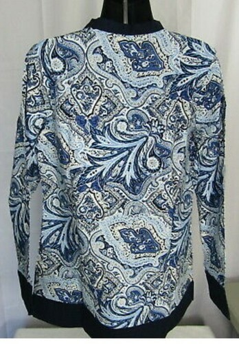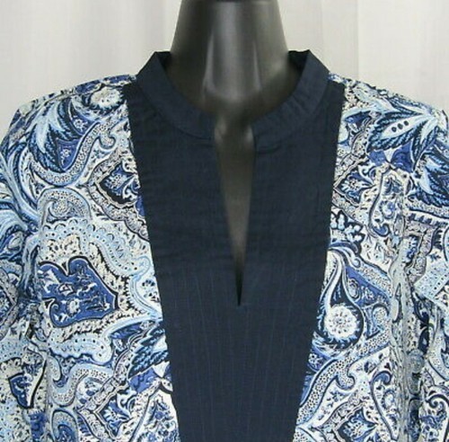 C.Wonder ~ Women's Size 8 ~ Blue Paisley Print ~ Long Sleeve Tunic w/Solid Trim