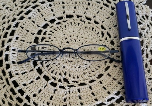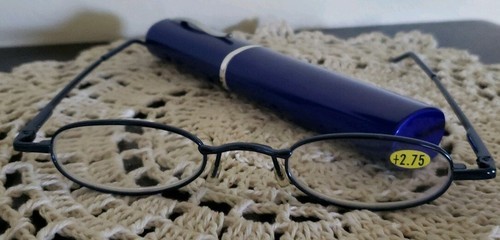 Reading Eye Glasses ~ Blue Tube Case ~ Blue Colored Frame ~ +2.75 Strength
