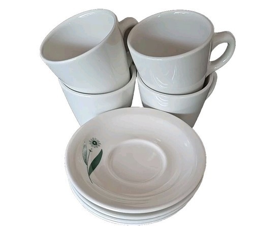 GREEN FIELD by Homer Laughlin ~ Four (4) Cups & Saucers ~ Restaurant Ware ~ USA
