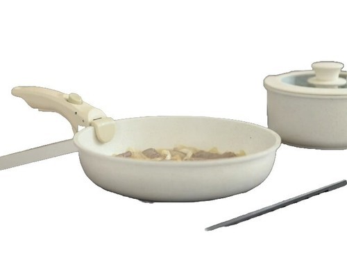 1 Handle ~ 2 Frypans ~ 1 Saucepan ~ 1 Lid |
