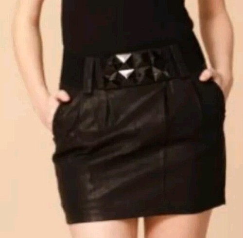 Mischa Barton ~ Black Studded w/Belt ~ BLONDI Skirt ~ Size Large ~ Faux Leather
