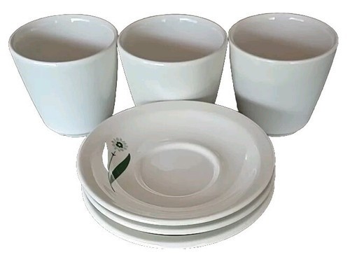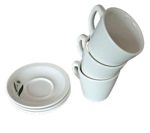 GREEN FIELD by Homer Laughlin ~ Three (3) Cups & Saucers ~ Restaurant Ware ~ USA