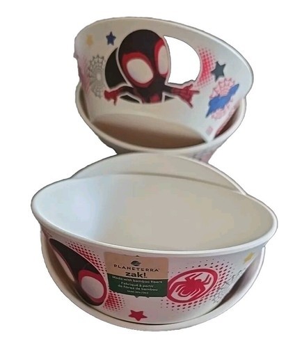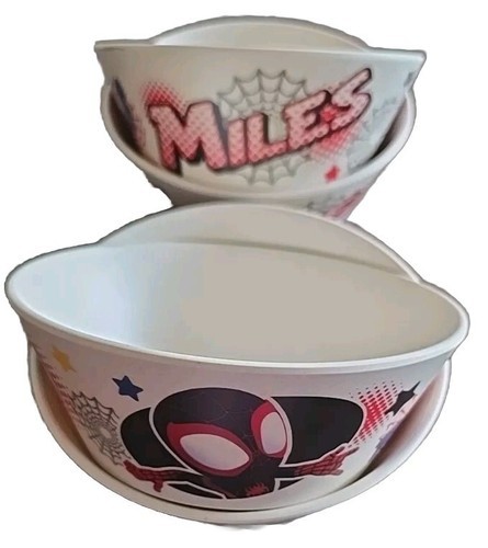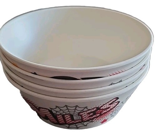 Zak Designs ~ Four (4) Melamine ~ RED SPIDEY ARTWORK MILES ~ 6" Diameter Bowls