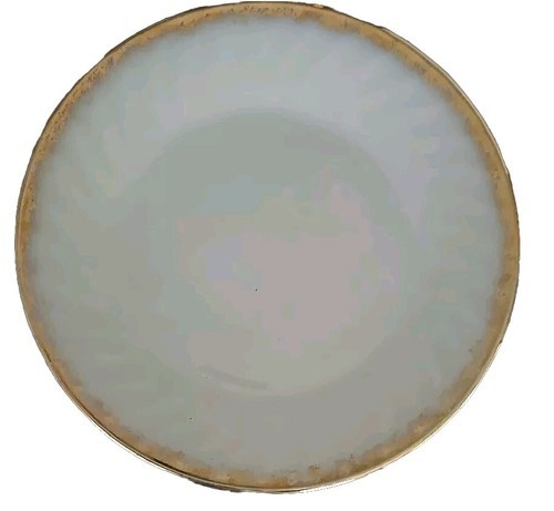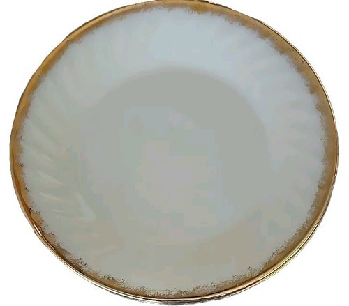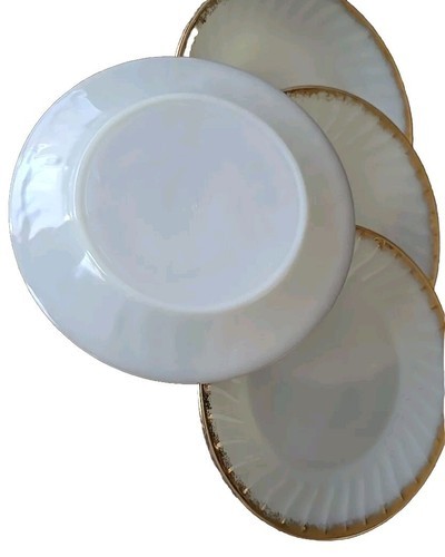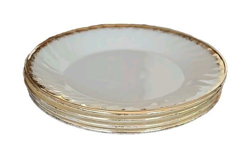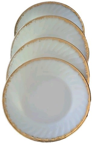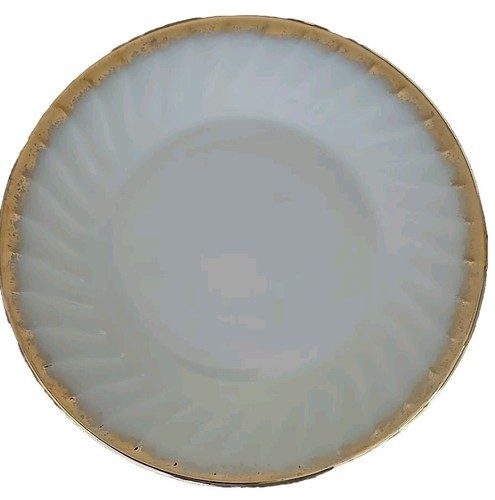 Four (4) Fire King ~ White Swirl Shell ~ Gold Rim ~ 9" Luncheon Plates (1)