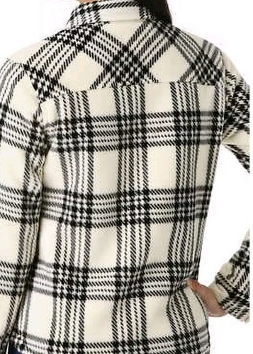 One (1) Plaid ~ Fleece Lined Shirt Jacket ~ Two (2) front chest patch pockets ~ Snap front closure ~ 100% Polyester