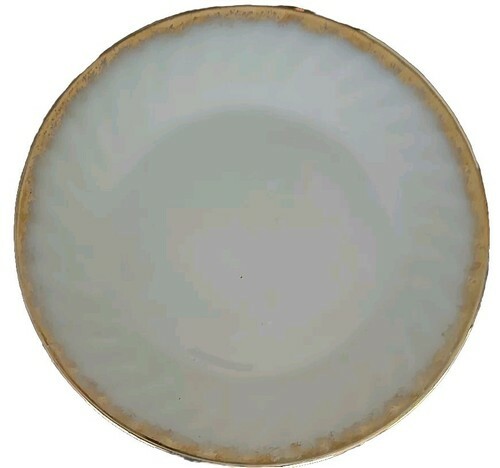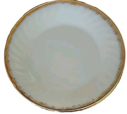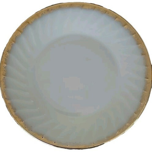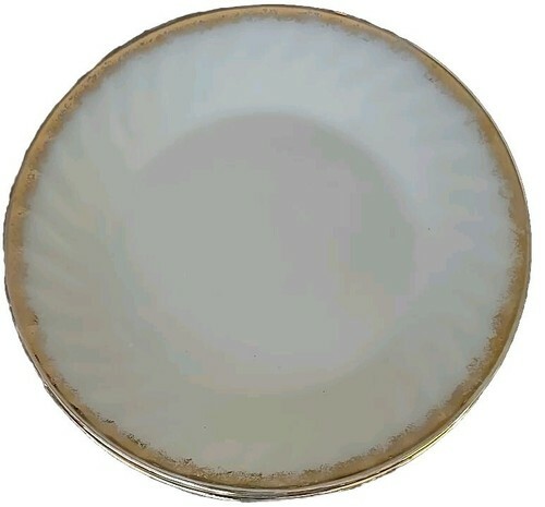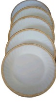 Five (5) Fire King ~ White Swirl Shell ~ Gold Rim ~ 9" Luncheon Plates (2)
