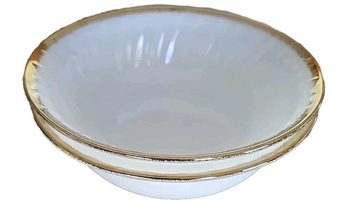 Two (2) Vintage Fire King ~ WHITE SWIRL ~ 8" Serving Bowls ~ Gold Rim (3)