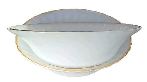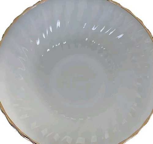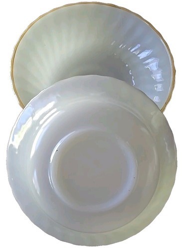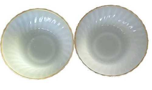 Two (2) Vintage Fire King ~ WHITE SWIRL ~ 8.5" Serving Bowls ~ Gold Rim (1)
