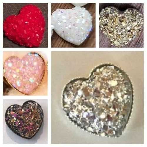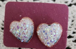 One (1) Pair Fashion Earrings ~ Glittery Heart ~ White ~ Rose Gold Studs/Posts