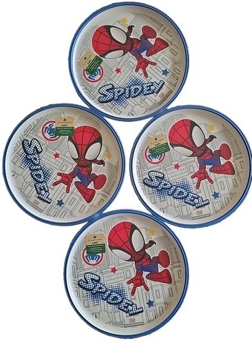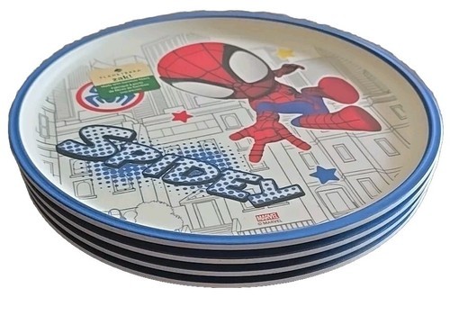 Zak Designs ~ Four (4) Melamine ~ BLUE SPIDEY ARTWORK ~ 8" Diameter Plates