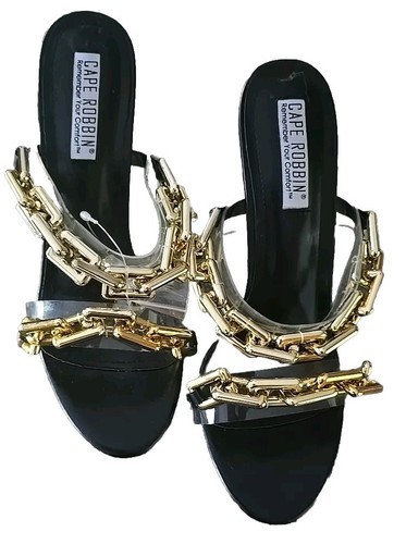 CAPE Robbin Open Toe Sandals ~ Size 10 ~ 4.25" Heel ~ ROMA ~ Chain Embellishment