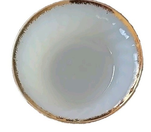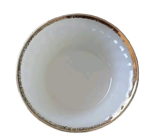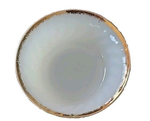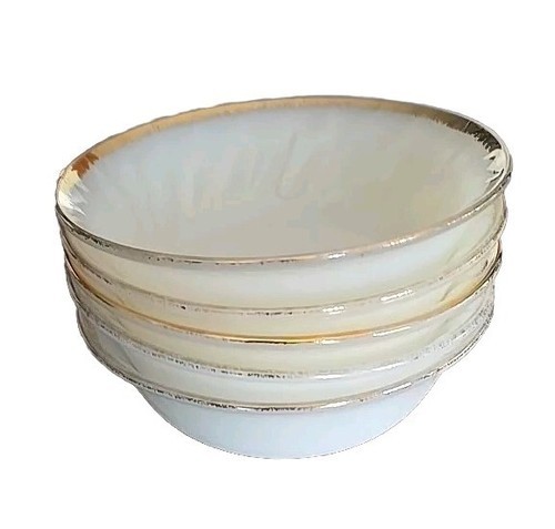 Five (5) Vintage Fire King ~ White Swirl ~ Berry Custard Bowls ~ Gold Rim (2)