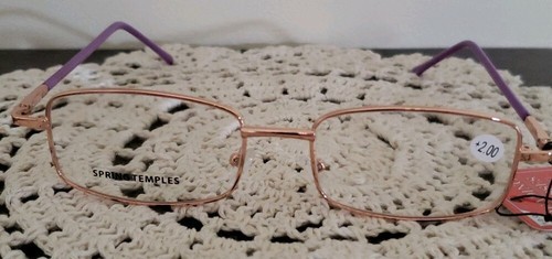 Purple Temple & Gold Metal Framed ~ Spring Temple ~ +2.00 Reading Glasses ~ D106