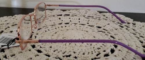 These glasses are PURPLE in color on temples GOLD colored metal frames