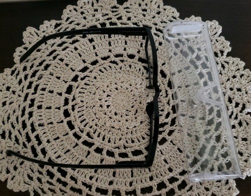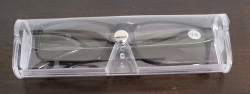 Black Plastic Framed ~ Spring Hinged ~ +2.00 Reading Glasses w/Clear Case ~L10B