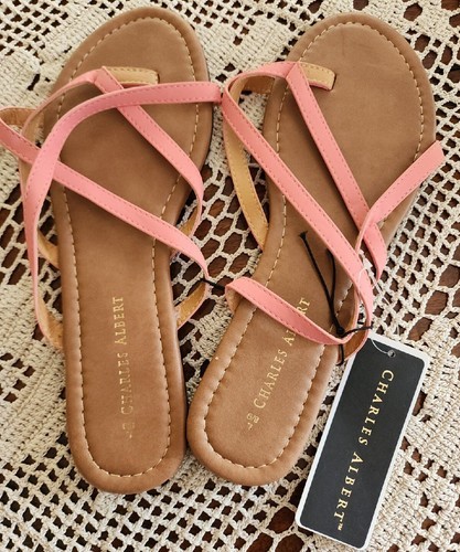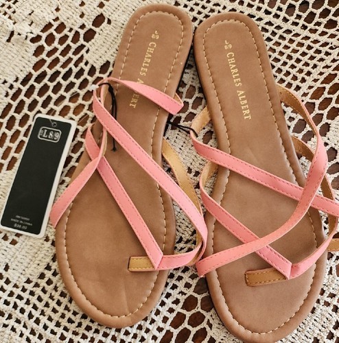 Charles Albert ~ Thong ~ Slip On ~ Strappy Sandals ~ CORAL ~ Ladies Size L (8/9)