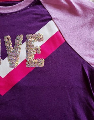 Athletic Works ~ Girl's Size XL (14/16) Top ~ Purple w/Silver Sequins "LOVE"