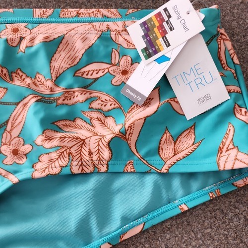 TIME and TRU ~ 2X (20W-22W) ~ Turquoise Cove Jacobean Floral Swimming Boyshorts
