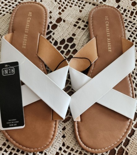 Charles Albert ~ Slip On ~ Criss-Cross Strap Sandals ~ WHITE ~ Ladies M (7/8)