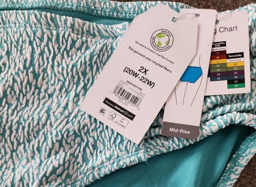 TIME and TRU ~ 2X (20W-22W) ~ TURQUOISE Textured ~ Mid-Rise ~ Swim Bottoms