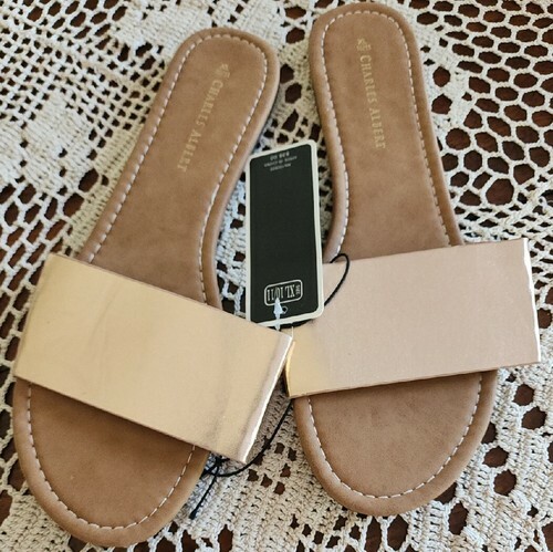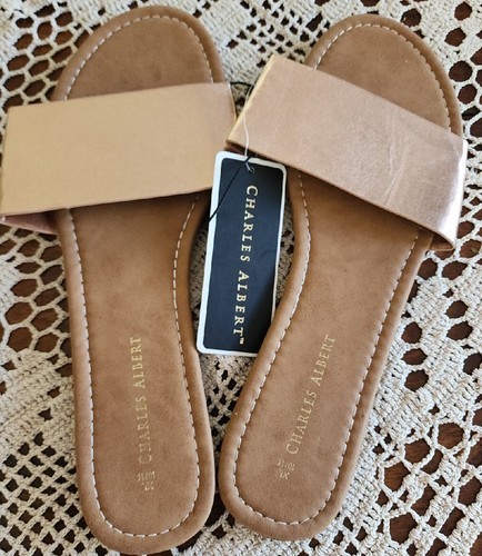 Charles Albert ~ Slip On ~ Open Toe ~ METALLIC Strap Sandals ~ Size XL (10/11)
