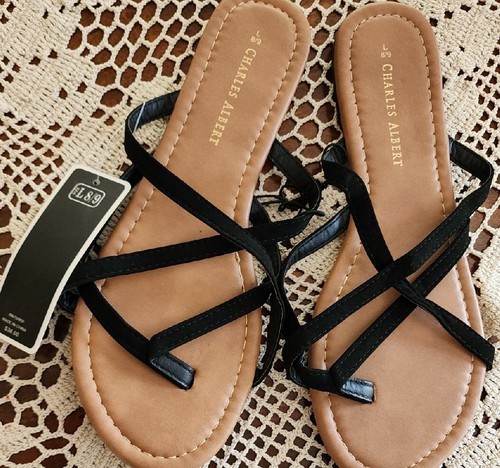 Charles Albert ~ Thong ~ Slip On ~ Strappy Sandals ~ BLACK ~ Ladies Size L (8/9)