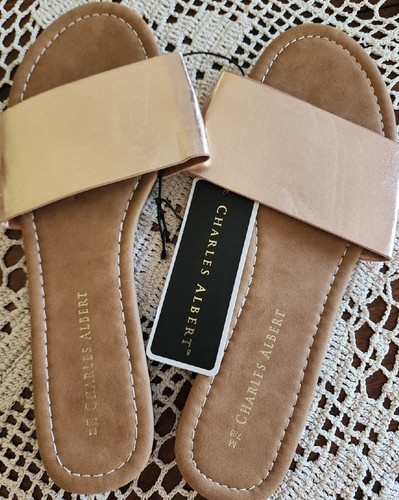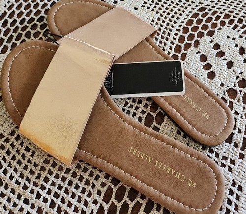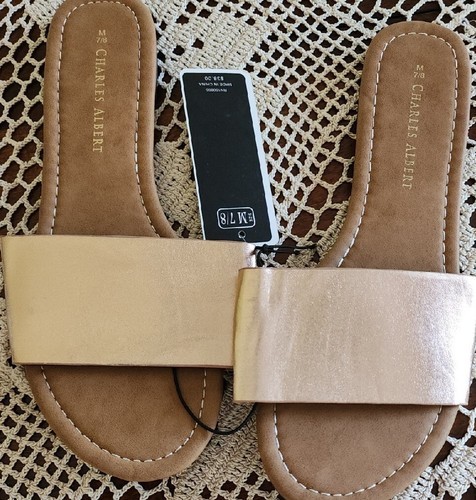 Charles Albert ~ Slip On ~ Open Toe ~ METALLIC Strap Sandals ~ Ladies M (7/8)