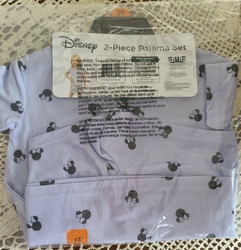 Disney™ ~ Minnie ~ Mickey Mouse ~ 2 Pc. Pajama Set ~ Black on Purple ~ Size 2T