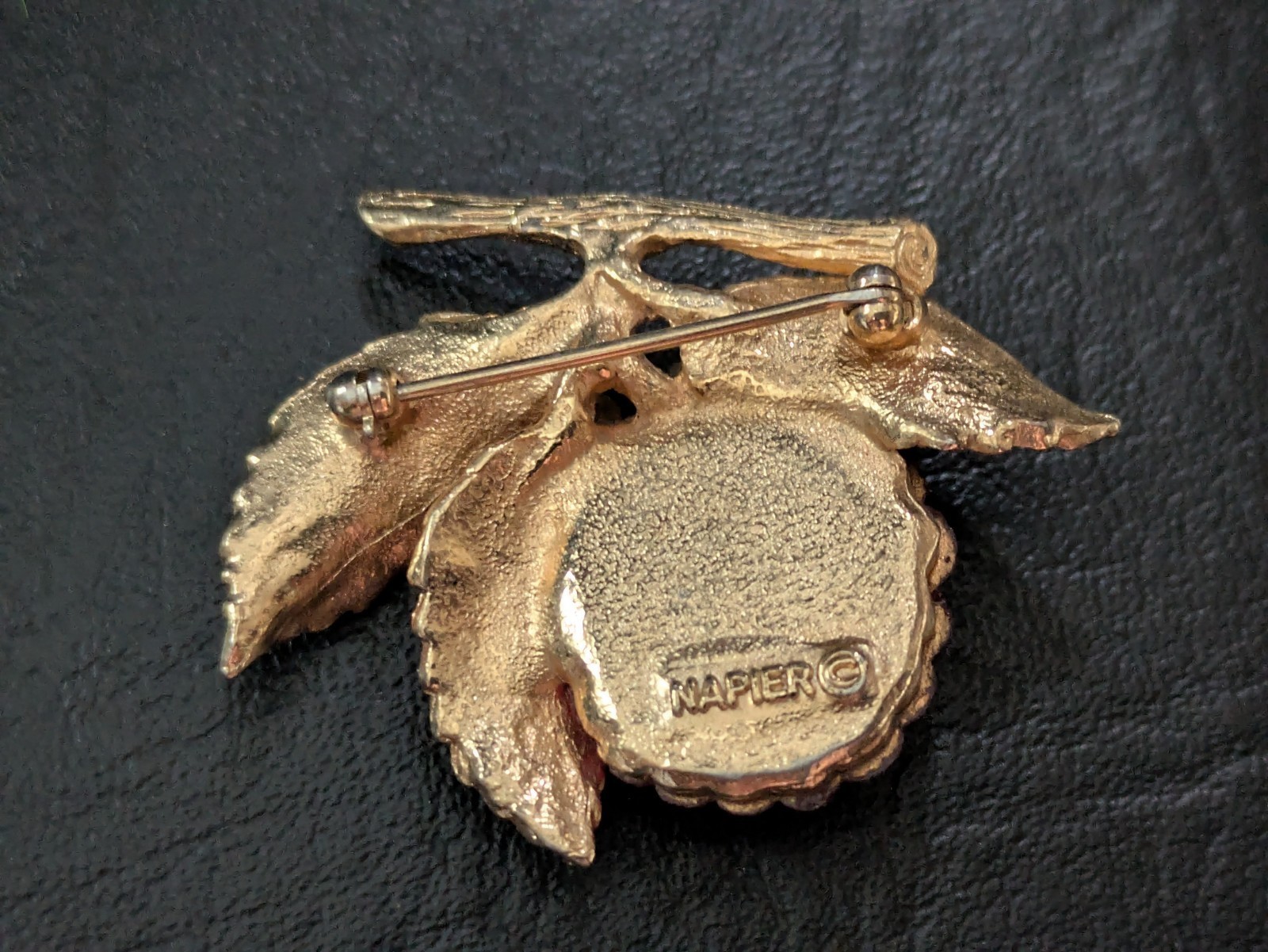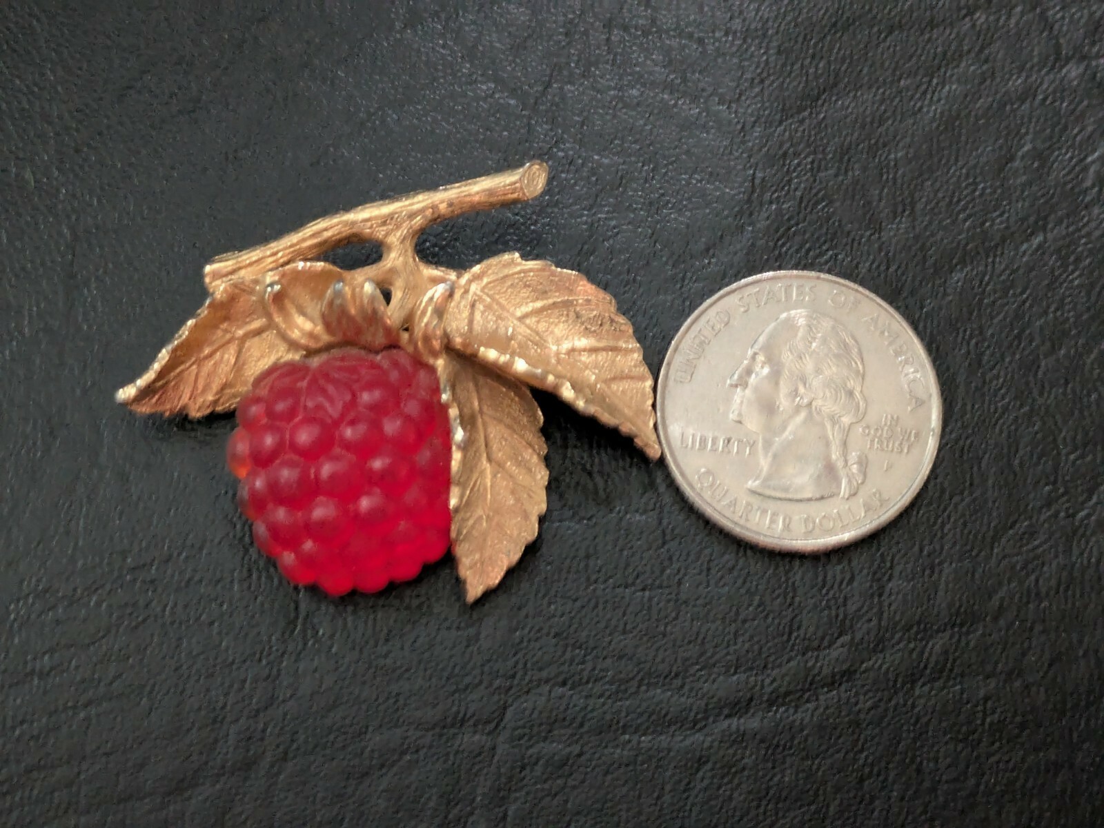 1960 Napier Framboise Broche Rouge Or Ton Verre Feuilles Branch 1.5 Inches