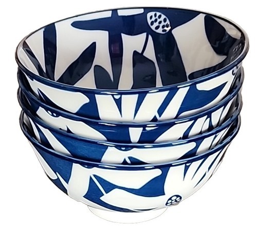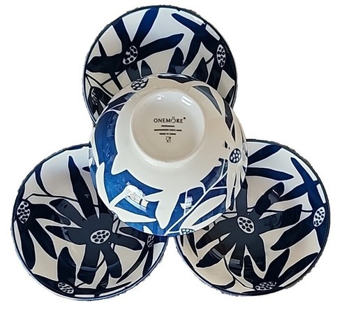 Four (4) ONEMORE ~ Navy & White ~ 10 Oz. ~ Durable Ceramic Bowls ~ Stackable (4)