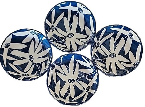 Four (4) ONEMORE ~ Navy & White ~ 10 Oz. ~ Durable Ceramic Bowls ~ Stackable (3)