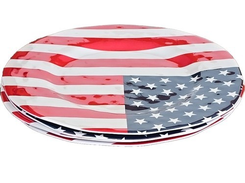 Four (4) AMERICANA ~ Stars & Stripes ~ 10.75" Dia ~ Multicolor ~ Melamine Plates