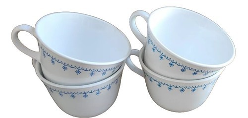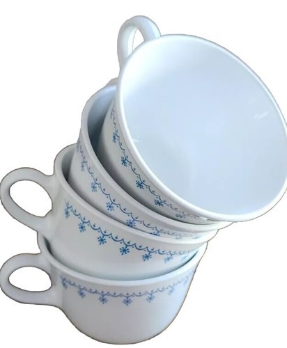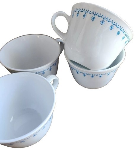 Four (4) Vintage Corelle Livingware ~ SNOWFLAKE BLUE GARLAND ~ Coffee Cups