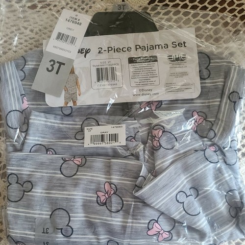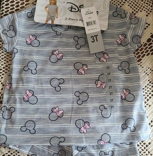Disney™ ~ Minnie ~ Mickey Mouse ~ 2 Piece Pajama Set ~ Gray Striped ~ Size 3T