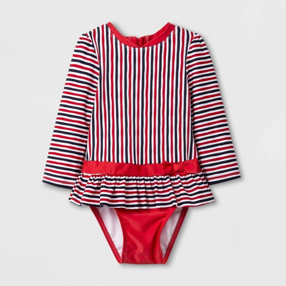 Cat & Jack™ ~ Infant Size 12 Months ~ Striped ~ One Piece Swimsuit w/Snaps