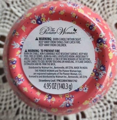 Pioneer Woman Candle ~ Floral Tin ~ Strawberry Leaf Scented ~ 4.95 Oz.