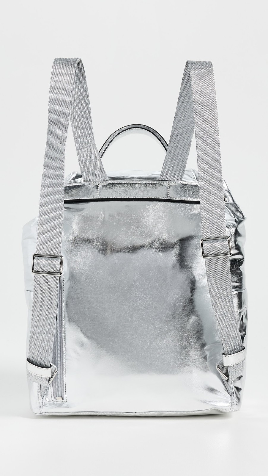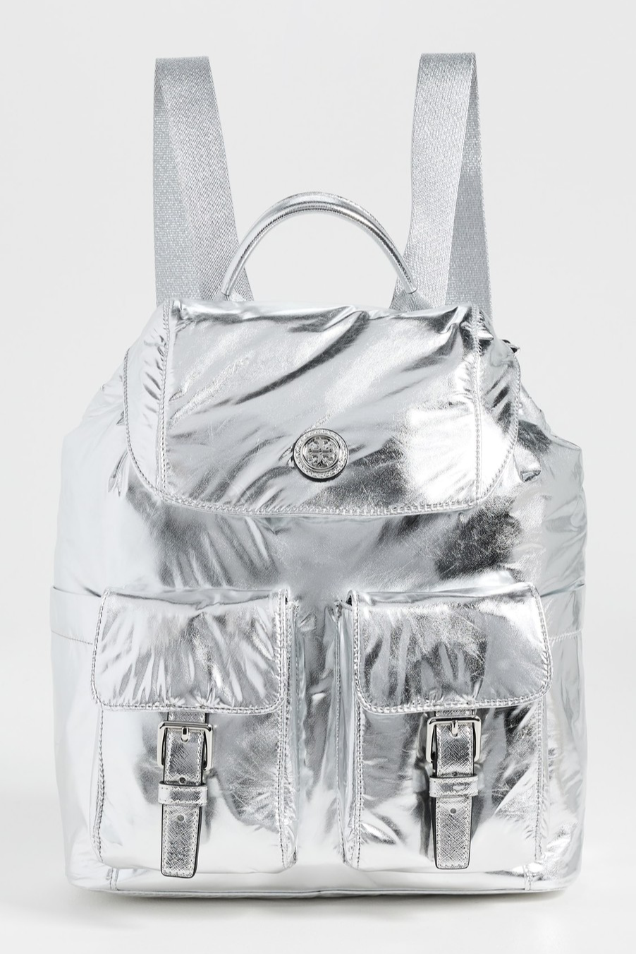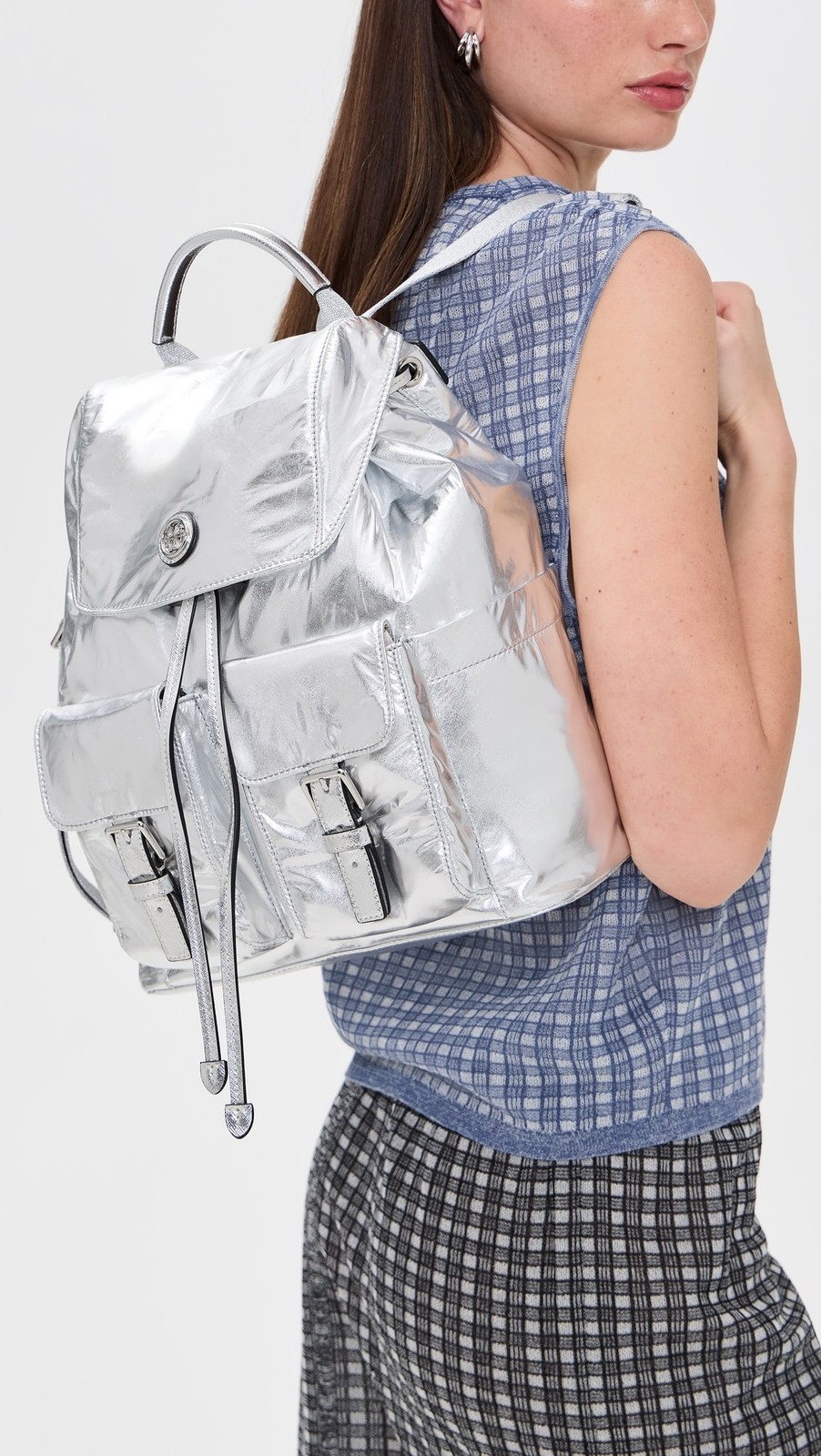 Tory Burch Virginia Metallic Flap Nylon Backpack~NWT~ Silver