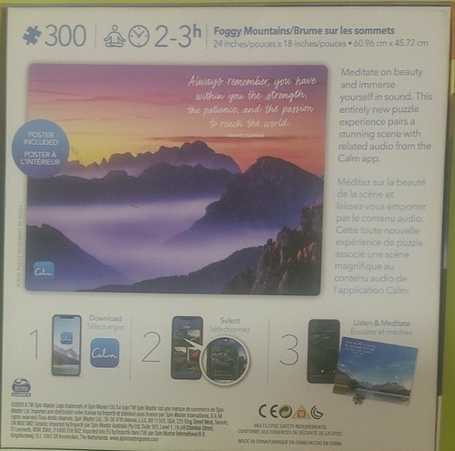 Calm ~ Mindful Jigsaw Puzzle w/Poster ~ Foggy Mountains ~ 300 Pieces ~ 18" x 24"