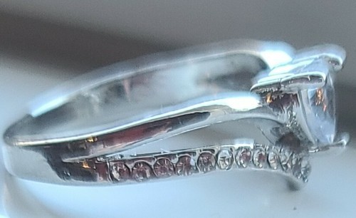 Silver-Tone Band ~ Heart Moissanite Gem w/Faux Diamonds ~ Size 10 Ring