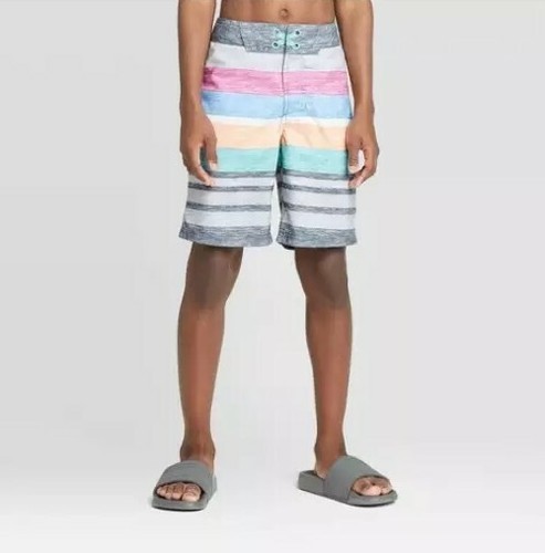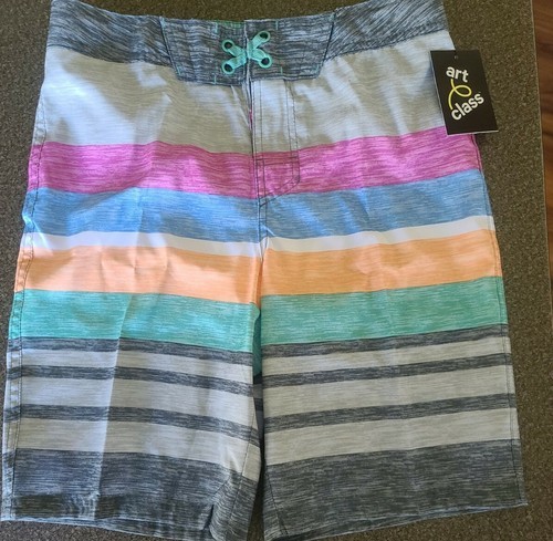art class™ Boys' Heathered Striped Swim Trunks ~ 12 Husky ~ UPF 50+ Protection